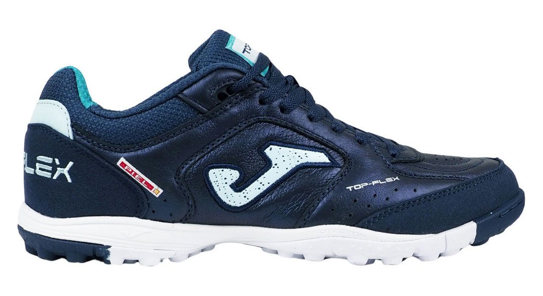 JOMA TOP FLEX — одна из самых известных моделей турфов (сороконожек), которую выбирают профессиональные футболисты. Верх турфов из прочной и очень гибкой кожи, которая обеспечивает контроль мяча и воздухопроницаемость. В тех местах обуви, где требуется дополнительная вентиляция, предусмотрена система VTS, способствующая воздухообмену. Для плотной посадки изнутри добавлен текстильный материал. В этой модели улучшена защита носка, а для усиления амортизации в промежуточной подошве использован современный синтетический материал филон. Подошва из износостойкой резины дольше сохраняет свои качества.