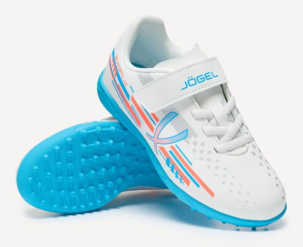 Бутсы многошиповые Jogel Evofly TF, белый/голубой детские